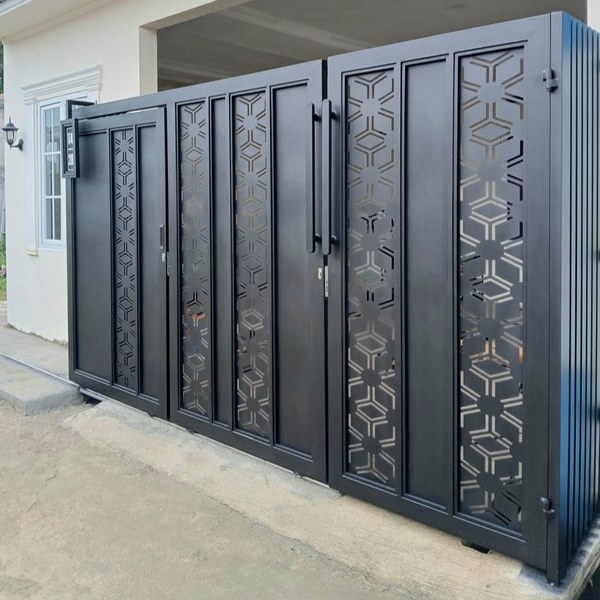 Pagar modern dengan desain custom menggunakan cutting plasma yang presisi, kuat, dan memiliki tampilan elegan.